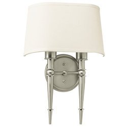 American Fluorescent MNS218SNEC Montrose Sconce, Hard Backed Linen Shade with Satin Nickel Finish, Double Light Feature